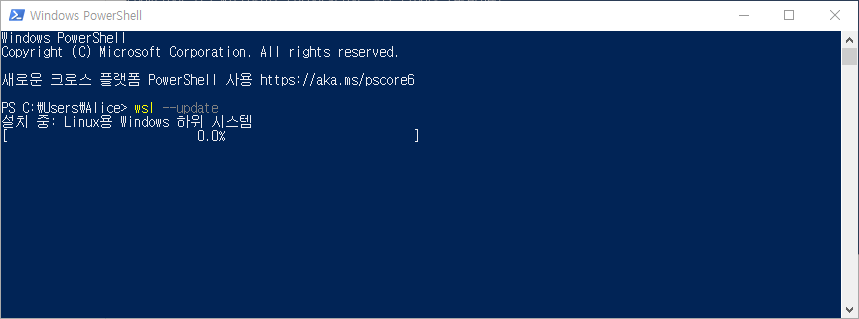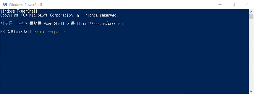 Windows PowerShell 실행 하여, wsl --update 입력