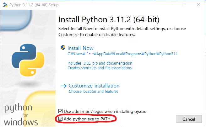 2) Add python.exe to PATH 체크 후, Install Now 클릭