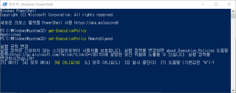 : 권한 상태 변경하기 (-> RemoteSigned)